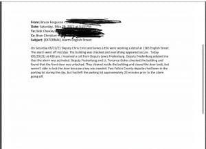 According to Emerald Robinson, two Fulton county deputies assigned to watch the building left 20 minutes before the alarm went off.