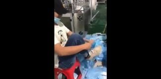 Video shows Chinese worker rubbing masks on hands and feet