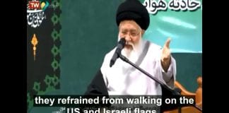 Students at Tehran university avoid walking on U.S. and Israeli flags