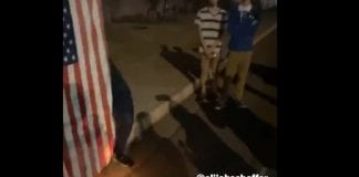 Anti-Trump protestors burn American flag outside Trump Rally